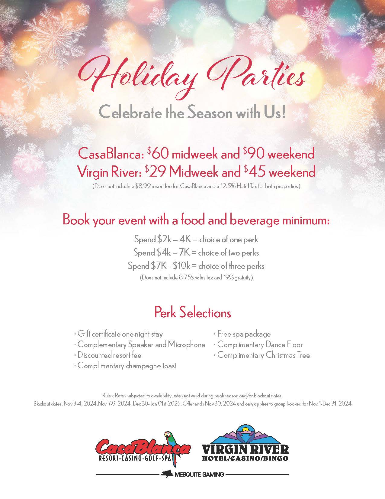 With approximately 70,000 square feet of flexible event space, the CasaBlanca offers the ideal venue for conferences, conventions, weddings, banquets, and other special occasions in Mesquite, Nevada. Our versatile facilities can accommodate groups of all sizes, ensuring a seamless and unforgettable experience for your event.